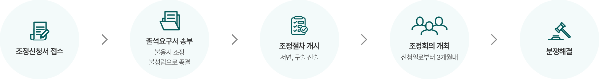 분쟁조정 신청 시, 전담 조정부를 구성하여 상호간의 합의를 통한 분쟁해결을 유도함